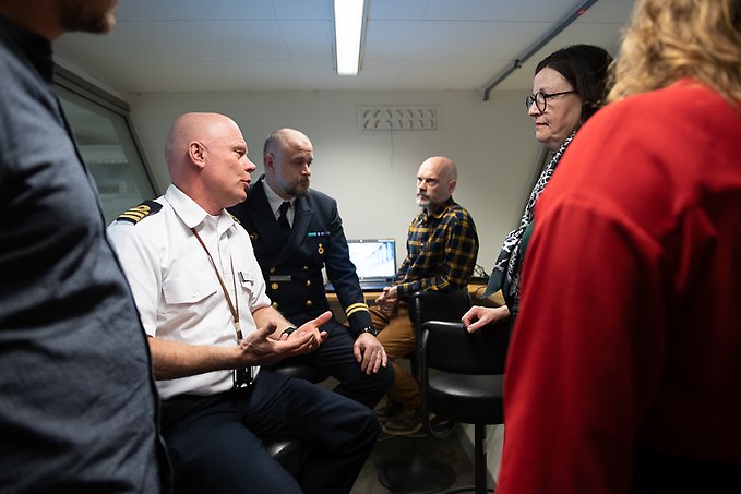 Marint krigsspel och möte med studenter på masterprogrammet krig, säkerhet och politik stod på programmet när utbildningsminister Anna Ekström besökte Försvarshögskolan måndagen den 21 mars.